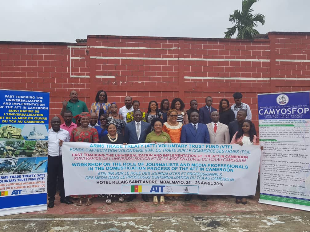 Then followed another Capacity Building Workshop with Journalists on the ATT Process, in Mbalmayo from April 25 to 26, 2018. CAMYOSFOP and MINREX engaged twenty-five Journalists and Media Professionals in this process that had to do with identifying their responsibility, respective role and collaboration in fast tracking the ratification and the domestication of the ATT in Cameroon with main objective: to build the capacity of Journalists and media practitioners from a wide variety of media landscapes on the ATT Process, and to brainstorm around their role in the domestication of the ATT in Cameroon.